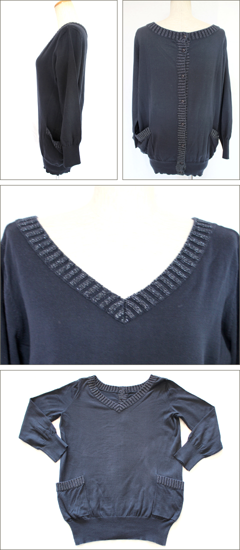 フラジール[FRAGILE] ラメ Vネック ニット 紺 [38]