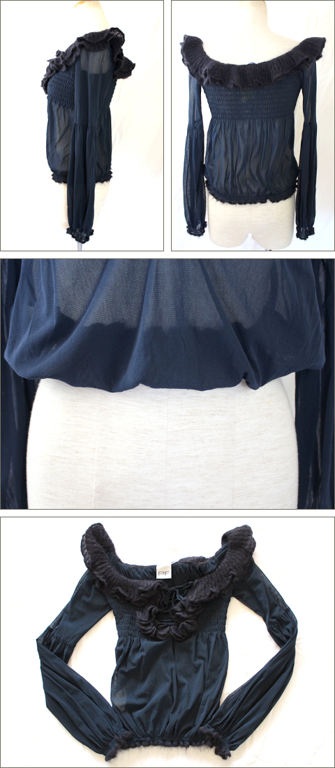 パオラフラーニ[PAORA FRANI] ニットフリル チュール ブラウス 紺 [40]