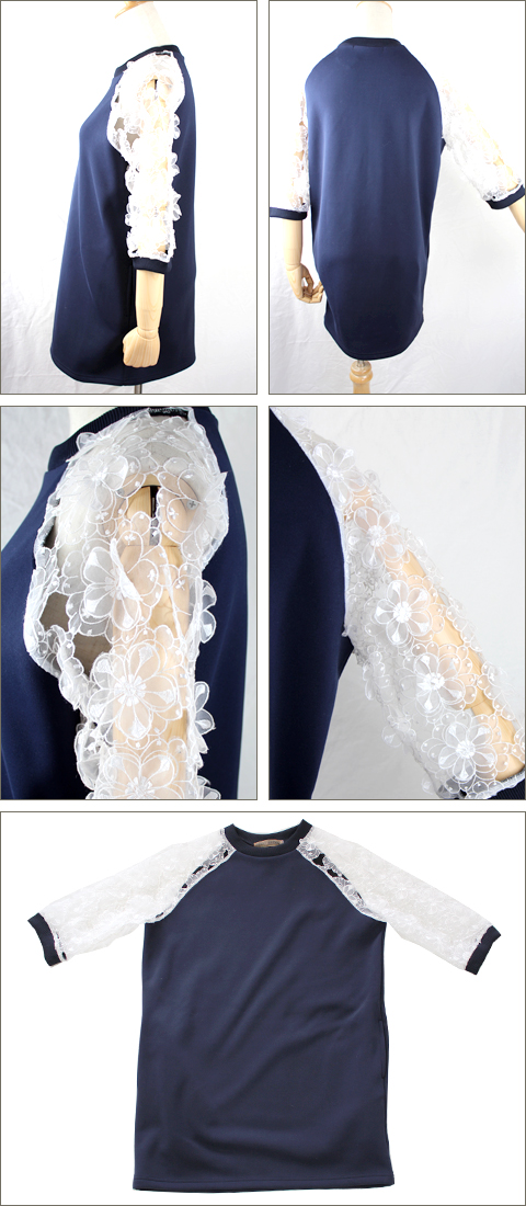 素材 : ポリエステル88% ポリウレタン12% レース/綿60% アクリル40% リブ部分/ポリエステル100%