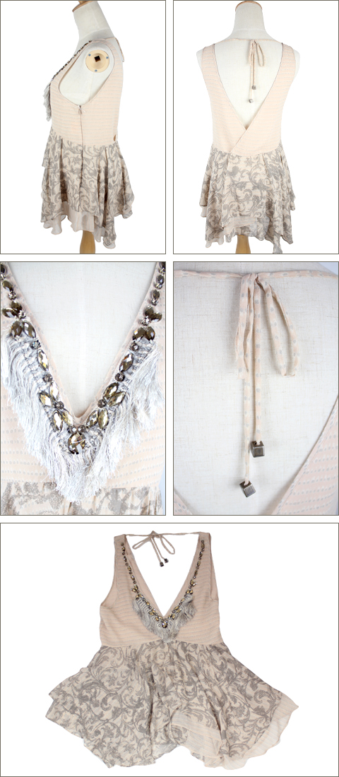 ダイアグラム [Diagram] ビジュー チュニック ベージュ グレー mix-9988